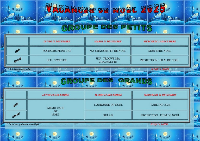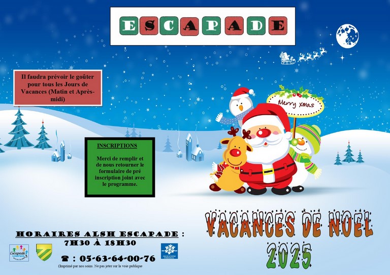 L’Accueil de Loisirs ESCAPADE sera ouvert pendant les Vacances de Noël.